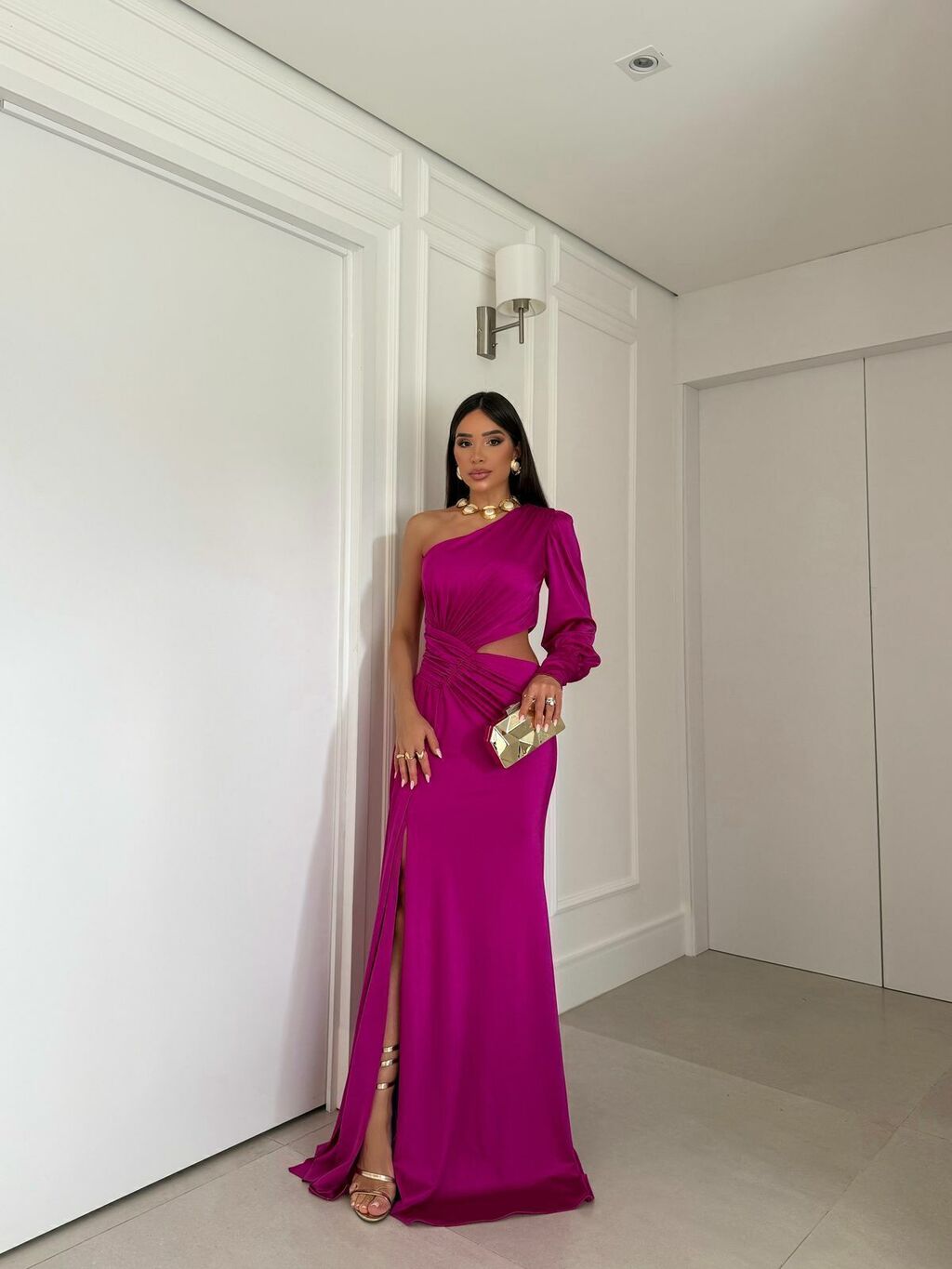 Tecido em Malha Prada , manga única com abertura , detalhe em grapeado e fenda frontal , possui bojo dando sustentação em busto , modelagem justa ao corpo , abertura em lateral dando charme e sensualidade ao mesmo , forrado sem transparencias , dress em puro charme e elegancia .