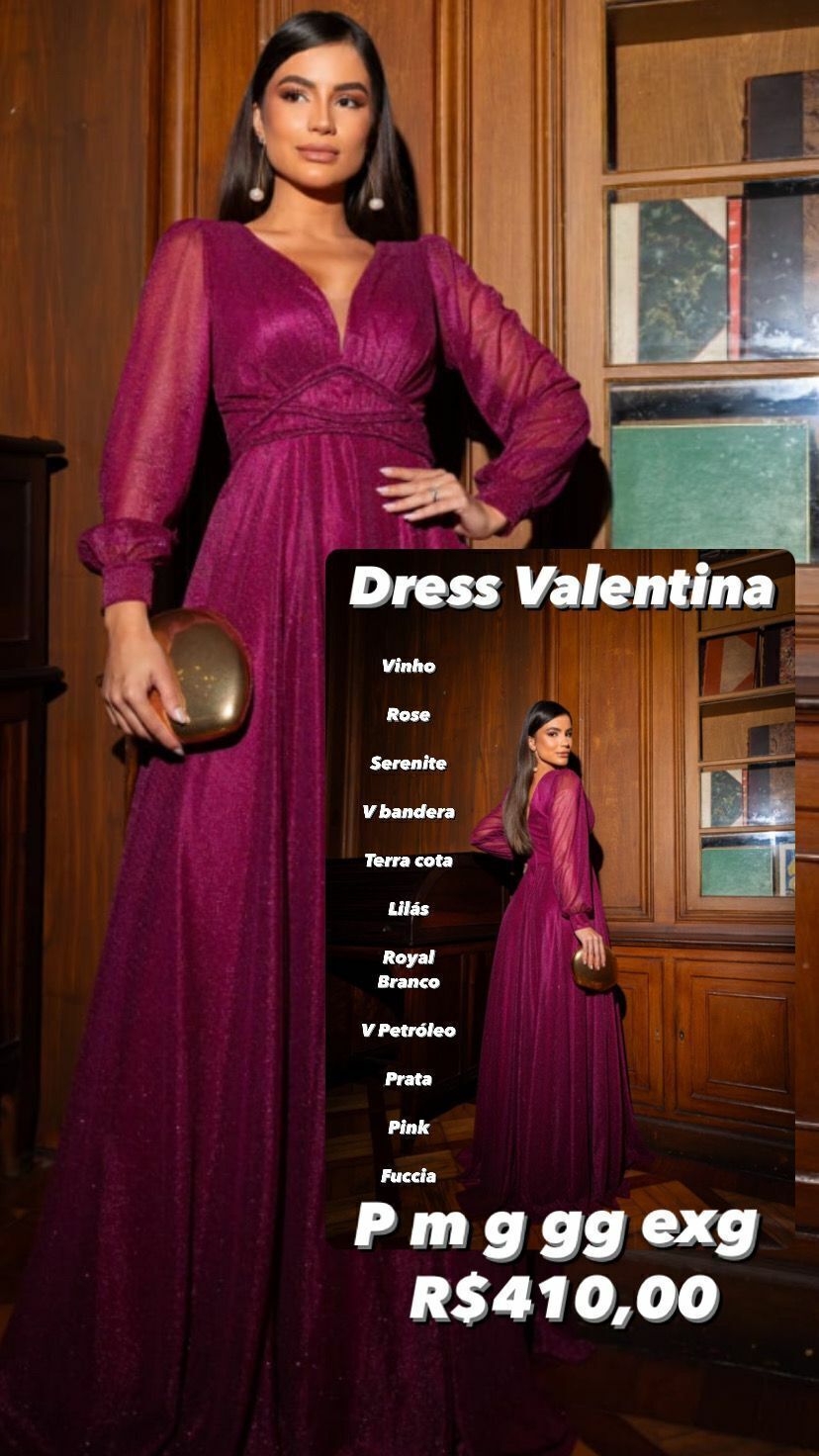 Tecido em tule forrado , com leve brilho , mangas longas , ziper traseiro , fluido , não possui fenda , detalhe entrelaçados em cintura , dress puro charme e elegancia .